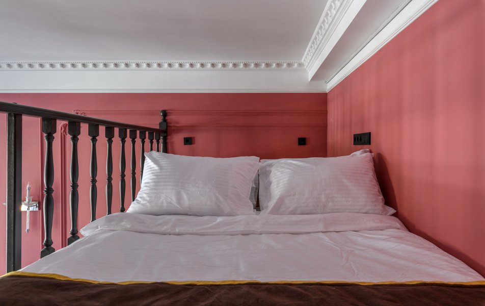 Гостям предлагаются три формата размещения — от компактной двухуровневой студии до просторных двухкомнатных апартаментов, рассчитанных на шестерых. В каждом — продуманный дизайн, отсылающий к разным эстетикам: бирюзово-изумрудные акценты, лазурь с алыми вкраплениями, коралловые тона в золотом обрамлении. Спальные зоны оборудованы ортопедическими матрасами, постельное бельё — премиального качества. Диваны трансформируются в полноценные спальные места, а на втором уровне двухуровневых студий — уединённая спальня, как убежище от городского ритма.