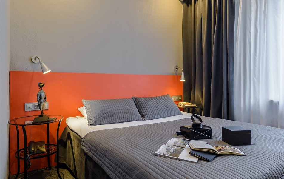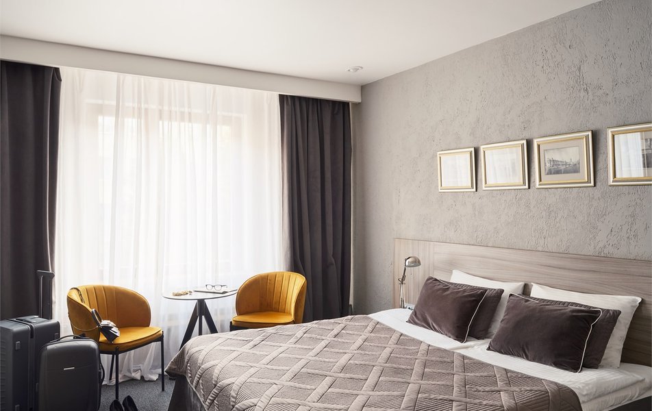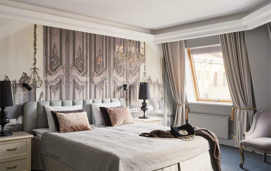 Отель разместился в четырехэтажном корпусе, расположенном в глубине двора рядом с историческим зданием. Гостей ожидают двухместные и одноместные номера Стандарт, а также интерьерные номера улучшенной категории, названные именами героинь романов Достоевского. В комнатах классическая обстановка, а интерьеры номеров Улучшенной категории воссоздают атмосферу петербургского быта XIX столетия. Все номера оснащены индивидуальным санузлом с душем, есть плазменный телевизор и кондиционер.