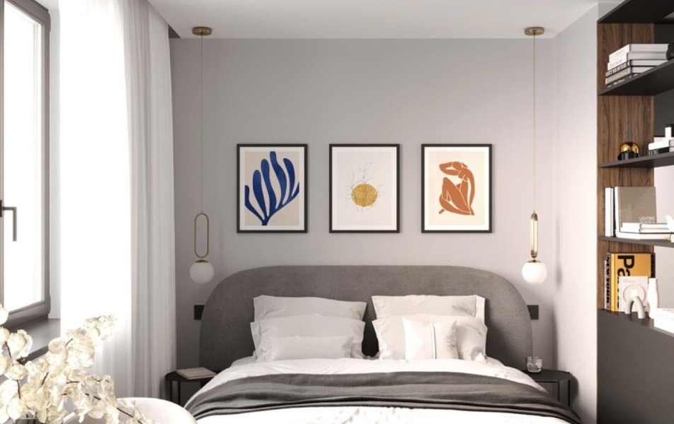 | Мебель | вешалка зеркало кровать двуспальная прикроватные тумбочки стол стулья шкаф |