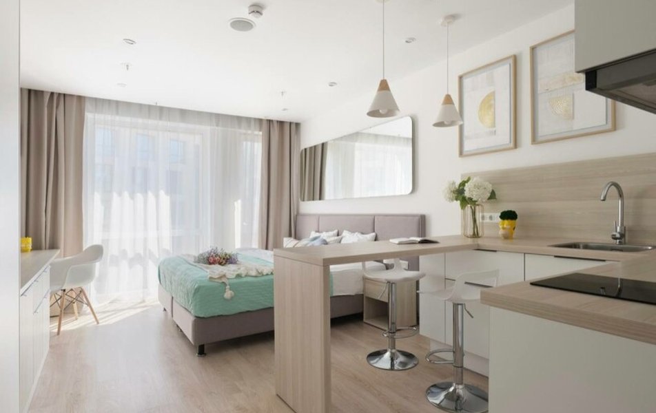 | Оборудование | микроволновая печь мини-холодильник набор посуды плита электрическая телевизор электрочайник |