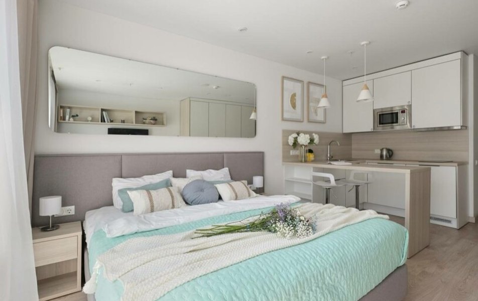 Внутри гостей встречает уютная, продуманная до мелочей атмосфера. Здесь ценят простые, но важные вещи: всегда свежее белье, пушистые полотенца и возможность в любой момент приготовить что-то своё на компактной кухне с варочной панелью и микроволновой печью. Это место для путешественников, которые, оказавшись в самом сердце Северной столицы, хотят чувствовать себя как дома.