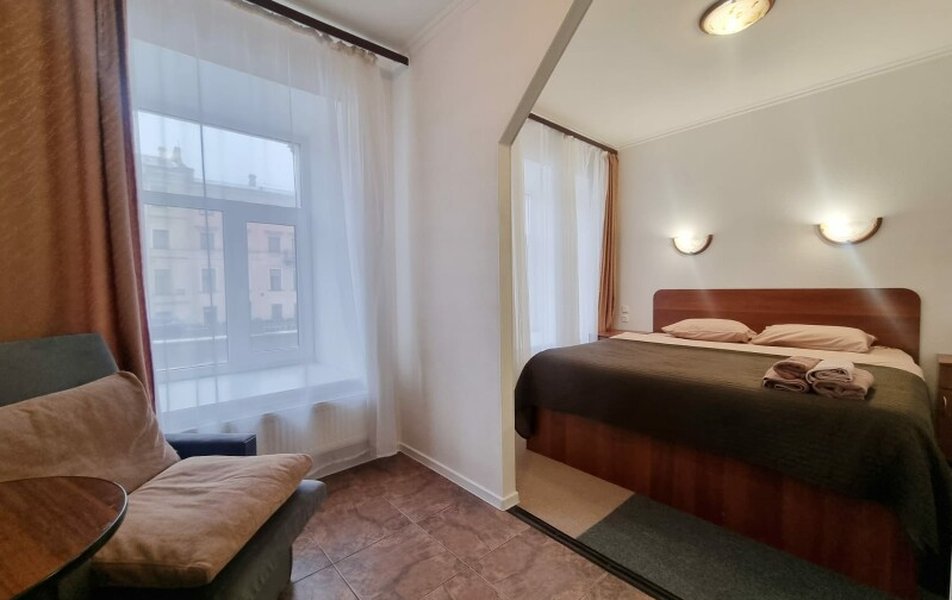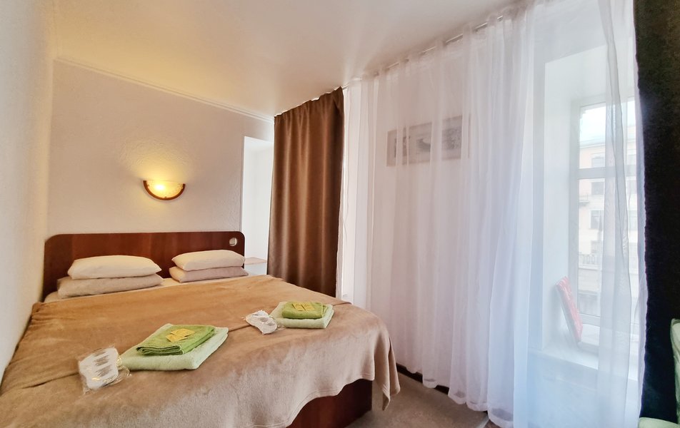 Отель разместился в пятиэтажном здании, расположенном на пересечении Мучного переулка и канала Грибоедова. В распоряжении гостей 14 комфортабельных уютных номеров, есть бюджетные варианты с общим санузлом, а есть вместительные двухкомнатные номера с гостиной и собственной ванной комнатой. Во всех номерах независимо от категории установлены телевизоры, подключена сеть wi-fi.