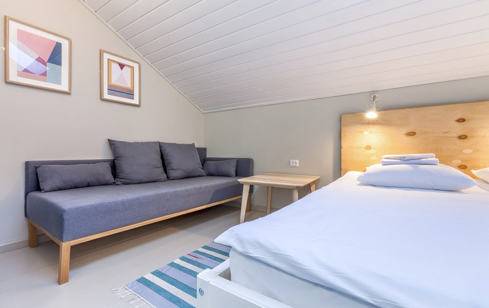 Отель разместился на четвертом мансардном этаже трехэтажного исторического здания. В распоряжении гостей уютные двухместные номера с удобствами. Номера оборудованы санузлом с душем, есть плазменный телевизор и беспроводной интернет. Почти во всех номерах мансардные окна на потолке, и только в двух комнатах круглые окна в стене.