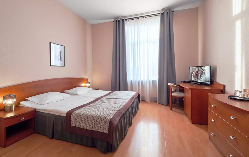 Отель разместился в пятиэтажном здании, расположенном на улице Смоляной. В отеле 51 номер разных категорий, способных вместить от 1 до 4 гостей. В каждом номере установлена гардеробная секция, есть плазменный телевизор, мини-холодильник, а из окон открываются виды на парк и уютный, тихий городской дворик. Также в каждом номере есть ванная комната с душевой кабинкой, для отдыхающих подготовлены косметические наборы.