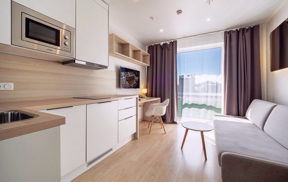 Для гостей доступна инфраструктура: кафе, фитнес-центр, коворкинг и подземный паркинг. Во дворе оборудована зелёная зона для отдыха.