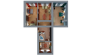 | Мебель | вешалка диван раскладной: 3 зеркало кровать двуспальная: 2 прикроватные тумбочки стол стулья шкаф |