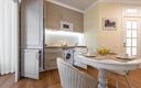 Каждый номер оборудован полноценной кухней с электрической плитой, холодильником, микроволновой печью, электрочайником и полным набором посуды для самостоятельного приготовления пищи. В ванной комнате с душем гостей ждут стиральная машина, фен и необходимые туалетные принадлежности. Для комфортного пребывания предусмотрены телевизор, беспроводной Wi-Fi, а также утюг с гладильной доской.