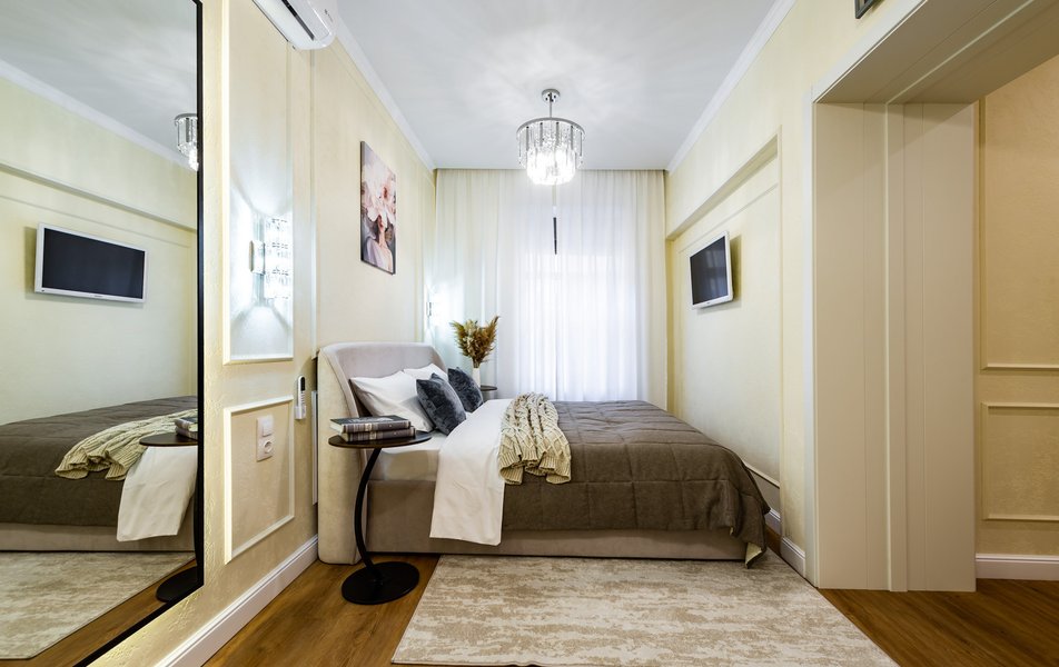 Гостям предлагается выбор просторных однокомнатных Апартаментов, рассчитанных на размещение компаний от трёх до четырёх человек. В зависимости от номера, спальные места представлены удобными двуспальными кроватями в сочетании с диванами или креслами-кроватями, что позволяет с комфортом разместиться как семье, так и дружеской компании. Во всех Апартаментах установлены кондиционеры для поддержания приятного микроклимата, а в некоторых номерах предусмотрен сейф для ценных вещей.