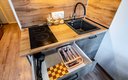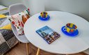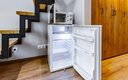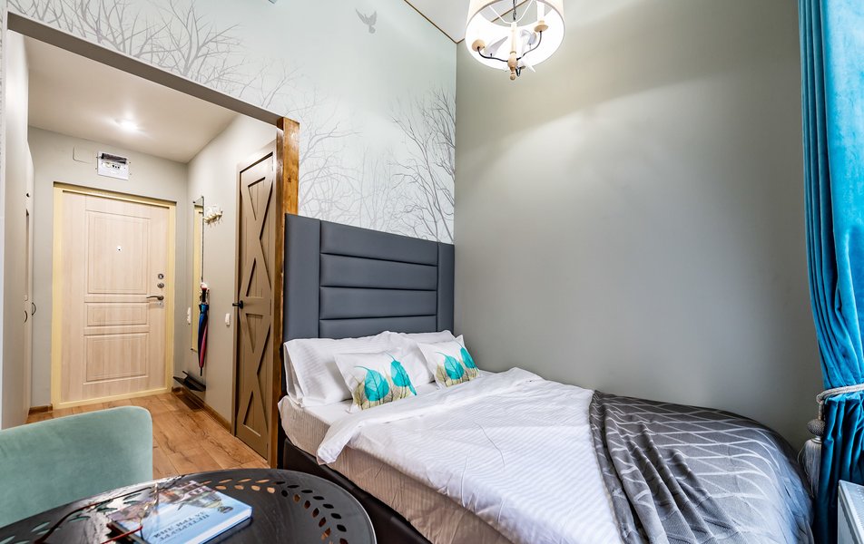 Внутреннее пространство апартаментов полностью готово для комфортного проживания. Здесь оборудовано спальное место с ортопедическим матрасом, обеспечивающим здоровый сон. На кухне установлена варочная поверхность, холодильник, СВЧ-печь и электрический чайник; предусмотрен полный набор посуды и столовых приборов для приготовления и приема пищи. В совмещенном санузле гостей ожидают банные принадлежности и средства гигиены. К приятным мелочам, создающим ощущение домашнего уюта, относятся постельное белье, полотенца, а также беспроводной высокоскоростной Wi-Fi и телевизор. Для тех, кто хочет сделать пребывание еще более комфортным, доступен ряд дополнительных опций: поддерживающая уборка, смена белья и полотенец, предоставление тапочек и дополнительного одеяла, а также возможность размещения с питомцами.
