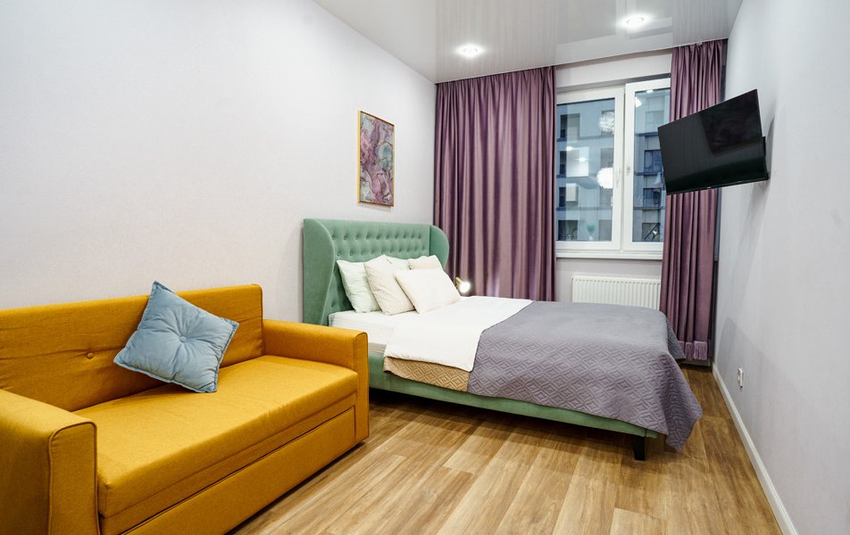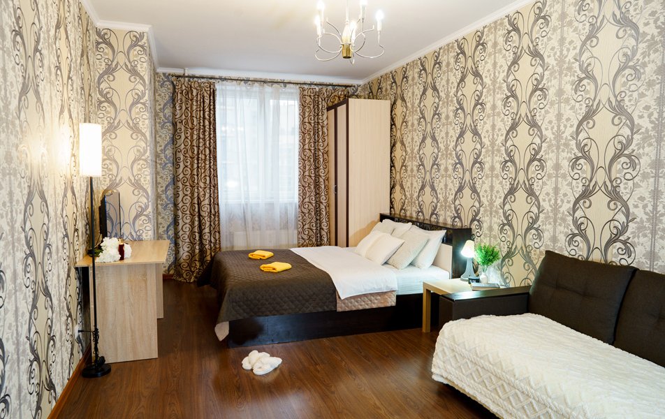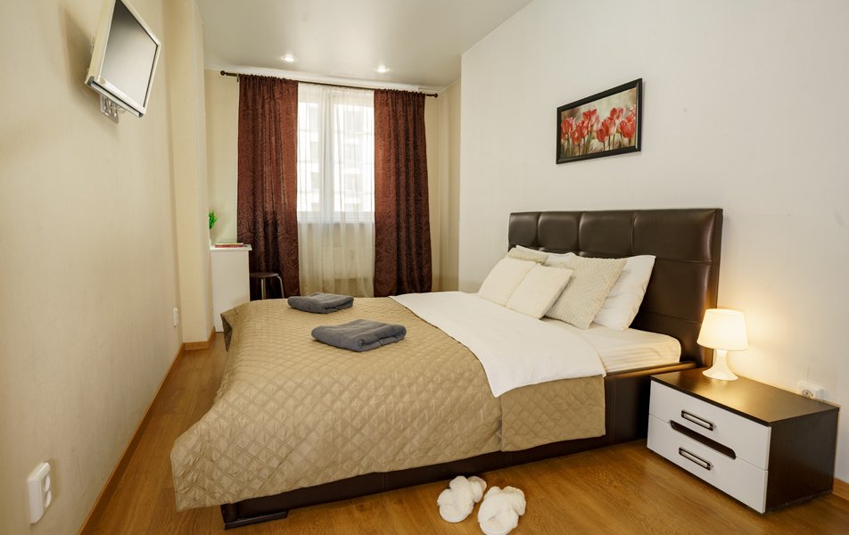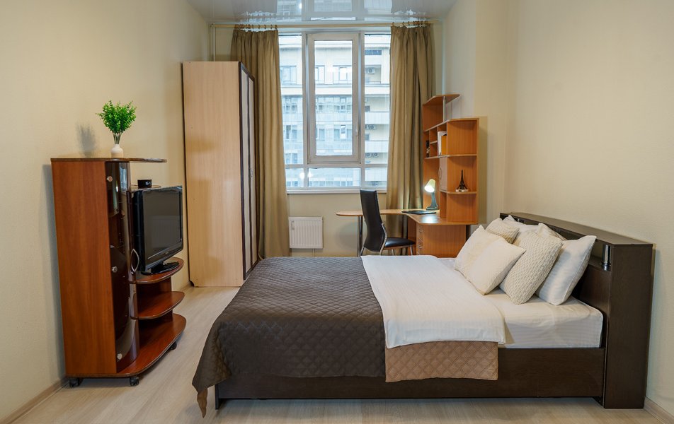 Апартаменты разместились в современном многоэтажном здании, возвышающемся на Московском проспекте. В распоряжении гостей просторные четырехместные апартаменты. Комнаты оборудованы кухней – есть вся необходимая посуда и бытовая техника – плита, холодник, электрочайник, и ванной комнатой, где установлена стиральная машина. В числе удобств – плазменный телевизор, высокоскоростной интернет, в некоторых комнатах предусмотрены меблированные балконы.