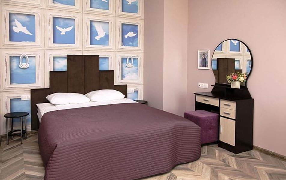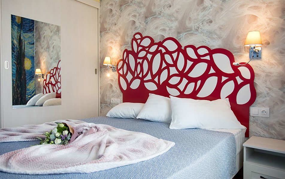 Гостям предлагаются просторные апартаменты, в которых всё для долгого и комфортного пребывания: кухня с необходимой техникой и посудой, ванная комната с качественными принадлежностями, кондиционер, Wi-Fi и телевизор для приятного времяпрепровождения после прогулок. Некоторые апартаменты носят имена великих художников — Ван Гога, Моне, Малевича — и отражают их эстетику в деталях интерьера. Есть и особые апартаменты в русском стиле — с теплом народных узоров и уютом старинной усадьбы.