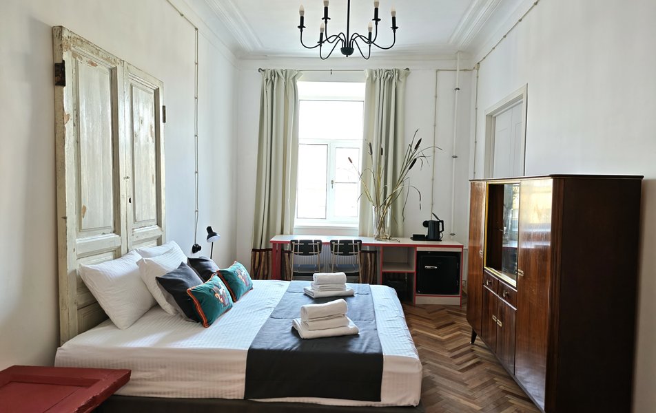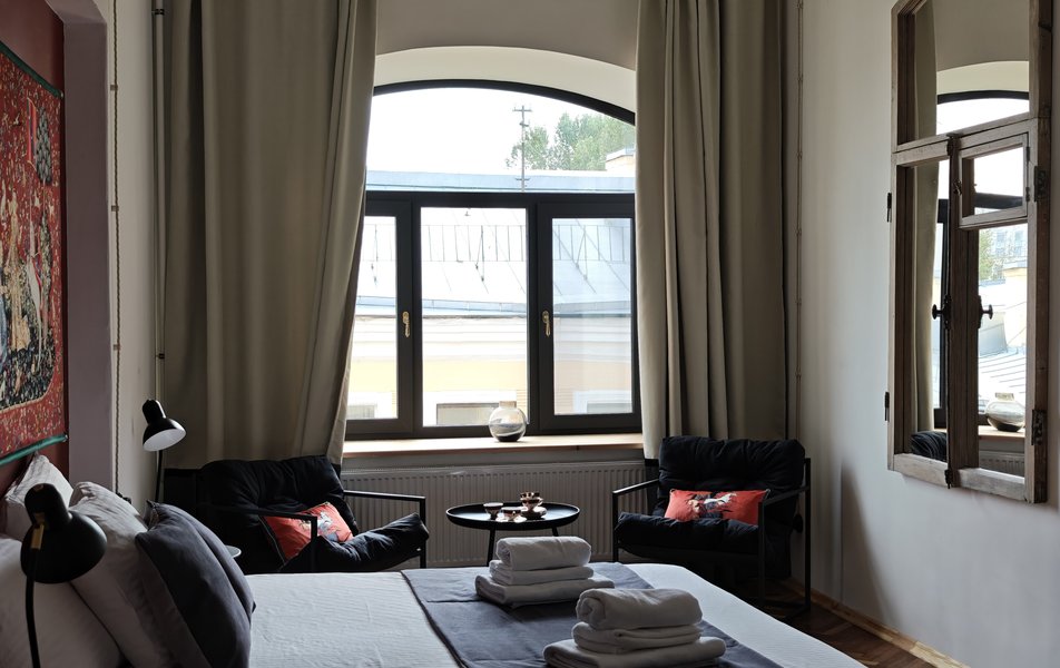 Апартаменты представляют собой серию уникальных номеров, каждый из которых имеет своё имя и индивидуальный характер. Это не просто стандартные помещения для ночлега, а тщательно продуманные пространства с особой атмосферой, где каждая деталь создаёт ощущение личного петербургского адреса. Апартаменты оформлены с вниманием к стилю и уюту, многие из них сохраняют дух старинного дома. Все апартаменты рассчитаны на двух гостей и оснащены двуспальной кроватью, создавая спокойную обстановку.