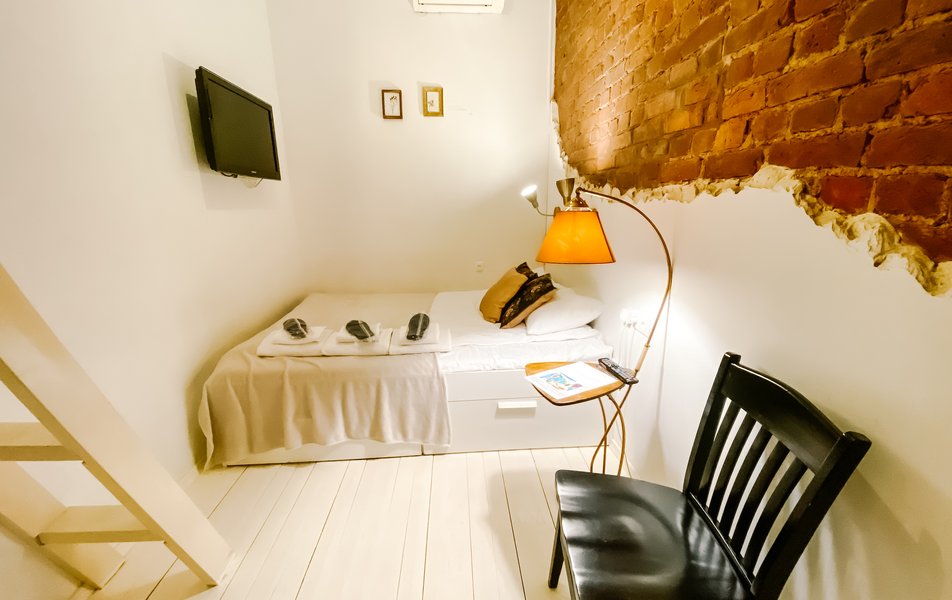 Жилой фонд включает несколько вариантов размещения, от стандартных комнат с общими удобствами до премиальных номеров с собственным санузлом. В интерьерах присутствуют элементы стиля лофт. Каждая категория имеет утюг, фен, обогреватель и дополнена деталями, выполненными вручную.
