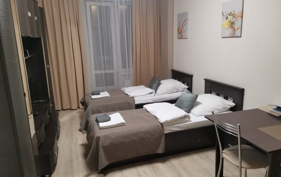 Гостям предлагаются стандартные студии и просторные семейные номера Delux, каждый из которых продуман для полноценного отдыха. В интерьере сочетаются функциональность и стиль: большая удобная кровать с качественным постельным бельём, телевизор и обеденная зона. На кухонной зоне есть всё для приготовления блюд: электроплита с вытяжкой, микроволновая печь, холодильник, а также посуда и принадлежности для чая и кофе. Для длительного проживания предусмотрены стиральная машина и гладильные принадлежности.