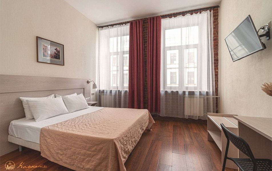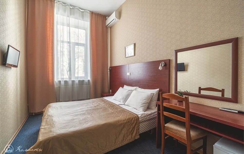 Стандартная комната оснащена всем необходимым для комфортного проживания, а именно отдельной ванной комнатой, современным телевизором с широким выбором каналов, мини-холодильником. В каждой комнате оборудован фен и полотенцесушитель. Окна всех комнат данной категории выходят в тихий и уютный двор.