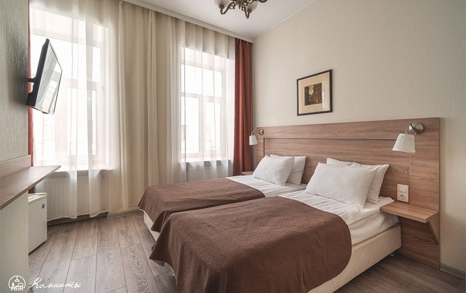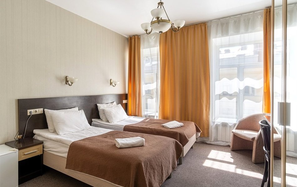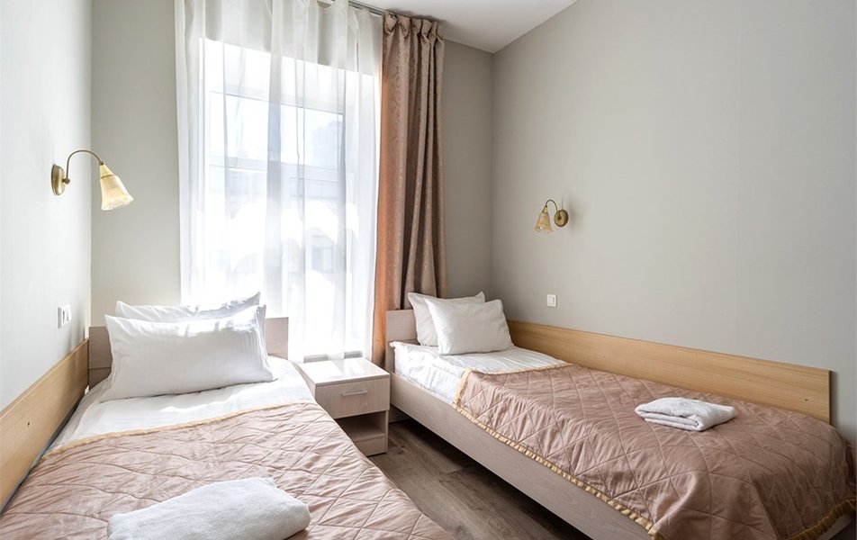 Стандартная комната с двумя раздельными кроватями является популярным выбором среди групп туристов, коллег, друзей или семей. Она оснащена всем необходимым для комфортного проживания, а именно отдельной ванной комнатой, современным телевизором с широким выбором каналов, мини-холодильником. В каждой, ванной комнате оборудован фен. На территории работает высокоскоростной Wi-Fi. Окна всех комнат данной категории выходят в тихий и уютный двор.