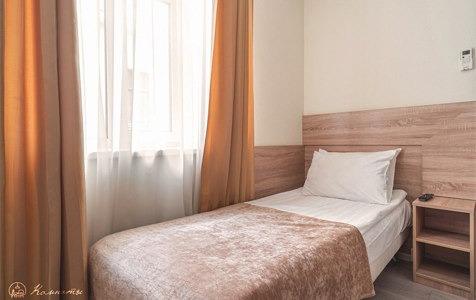 Обратите внимание! Присутствует два варианта одноместных комнат: с окном, выходящим во двор, и без окна. Одноместная комната идеально подходит для деловых путешественников и одиночных туристов. Оформленная в теплых пастельных тонах, она создает атмосферу уюта и комфорта. В комнате есть удобная односпальная кровать, телевизор и шкаф для одежды, что обеспечивает все необходимые условия для работы и отдыха.