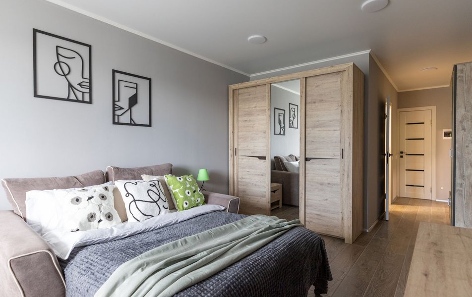 Апартаменты — это продуманное пространство для двоих, где каждая деталь подчинена идее отдыха и восстановления. Центральным элементом спальной зоны является удобный ортопедический диван с белоснежным постельным бельём, а плотные шторы «блэкаут» создают идеальную темноту для глубокого, сладкого сна. Напротив располагается большой Smart-телевизор с доступом к ведущим онлайн-кинотеатрам. Вместительный шкаф позволяет разместить вещи так, чтобы они не занимали лишнее пространство.