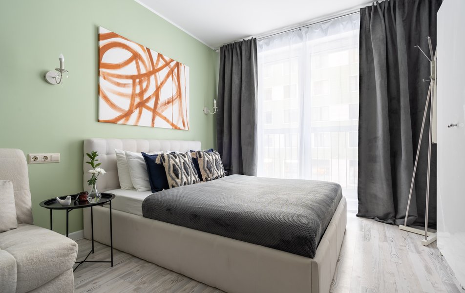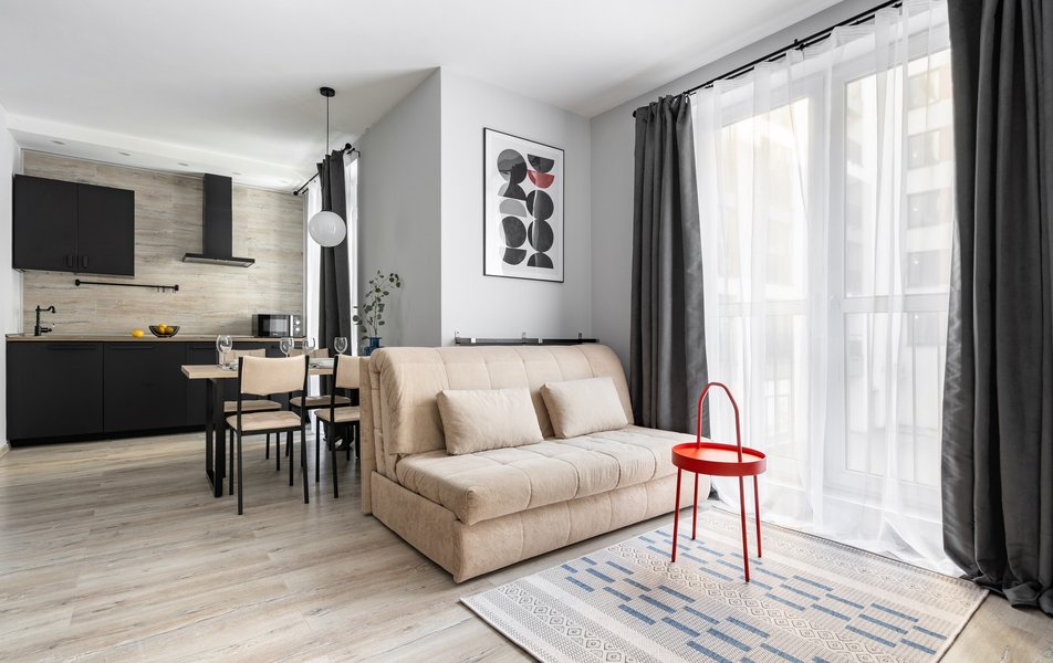 Компактная студия с удобной мебелью, телевизор, интернет Wi-Fi, полностью оборудованная кухонная зона со всей необходимой бытовой техникой, санузел с современной сантехникой и душевой, стиральная машина, гладильные принадлежности. В апартаментах выполнен качественный ремонт, используется только современное оборудование, что создает ощущение настоящего уюта.