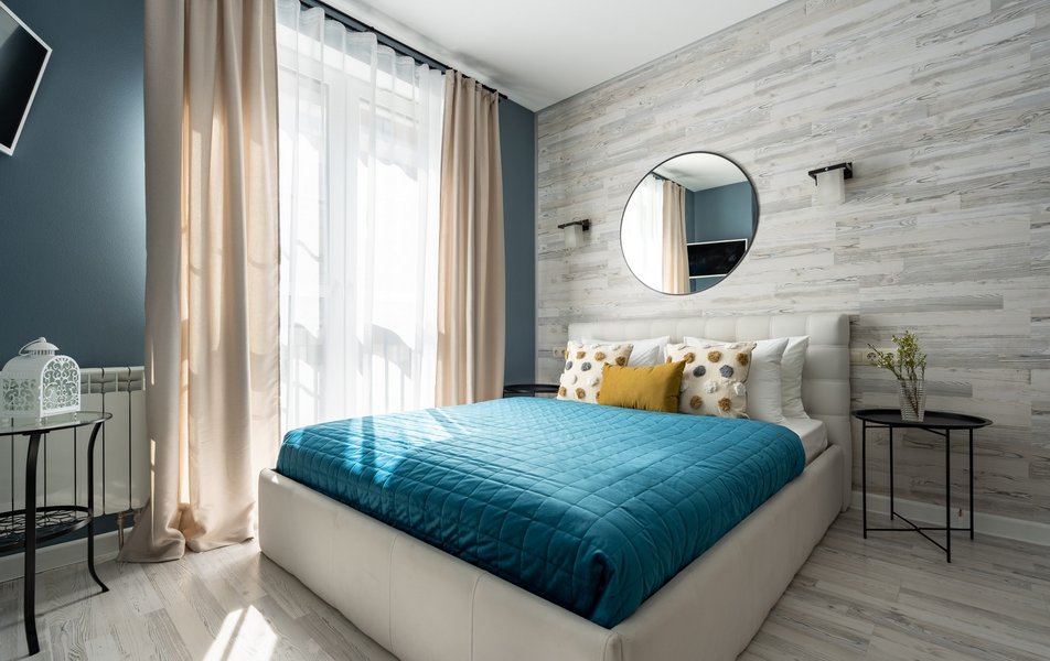 | Мебель | вешалка диван раскладной зеркало кровать двуспальная прикроватные столики стол: барная стойка стулья шкаф |