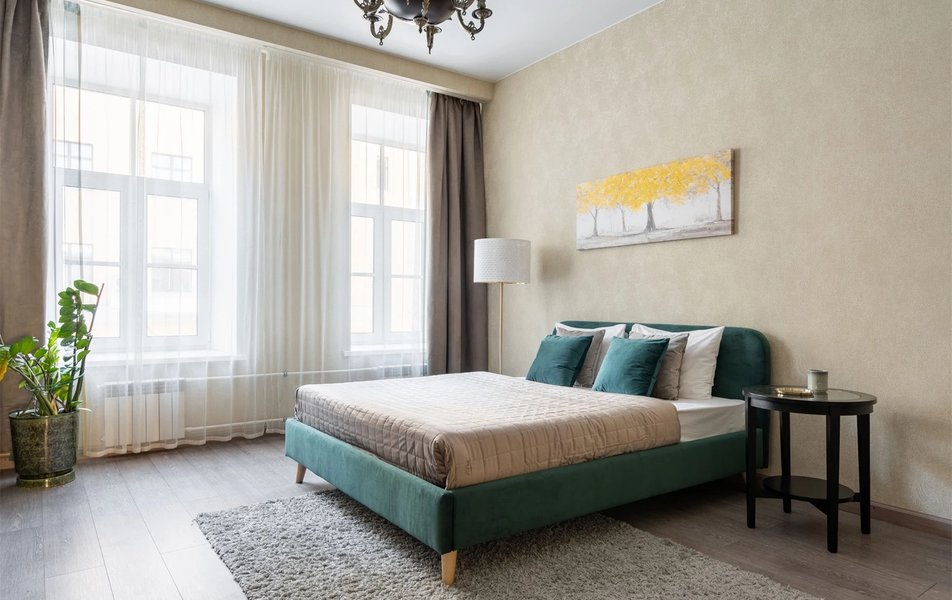 Просторные двухкомнатные апартаменты расположены в историческом центре Санкт-Петербурга, всего в пятидесяти метрах от Невского проспекта и знаменитого Аничкова моста. Несмотря на близость главной магистрали, окна выходят в тихий двор, что гарантирует спокойный отдых. Прямо напротив дома — музей Фаберже, в двух минутах пешком — популярная ресторанная улица Рубинштейна, а в десяти минутах — Итальянская улица с торговым центром «Пассаж», Манежная площадь, площадь Искусств и Русский музей. Ближайшие станции метро — «Гостиный двор» и «Маяковская», до Московского вокзала и ТЦ «Галерея» можно дойти за пятнадцать минут. Рядом с домом — остановки транспорта, магазины и множество кафе.
