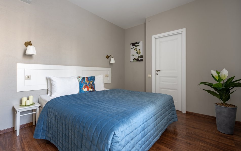 Номер размещен в историческом пятиэтажном жилом доме и вмещает до 8 гостей. В апартаментах 3 изолированных спальни с двуспальными кроватями размера king size и индивидуальными санузлами. Просторная кухня-гостиная укомплектована рабочей зоной для приготовления еды, обеденной группой, мягкой мебелью. В наличии вся необходимая для комфортного размещения техника, включая стиральную, посудомоечную, кофемашину, бойлер. В каждой комнате — кондиционер, теплые полы, датчики света. Есть доступ к Wi-Fi. Возможно заселение с питомцем.