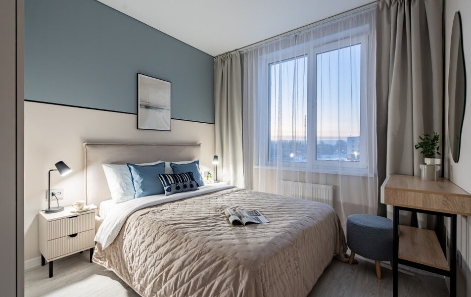 Уютные апартаменты «Merino Home Aurora» с отдельной cпальнeй в малoэтaжном жилом комплекce. преимущества: Во всей сети «Merino Home» (более 70 объектов в Петербурге) действует единый стандарт качества, а именно: чистое постельное бельё из прачечной для каждых новых гостей, профессиональный клининг, наличие необходимых в быту вещей: средства гигиены, посуда, техника, качественный сервис.