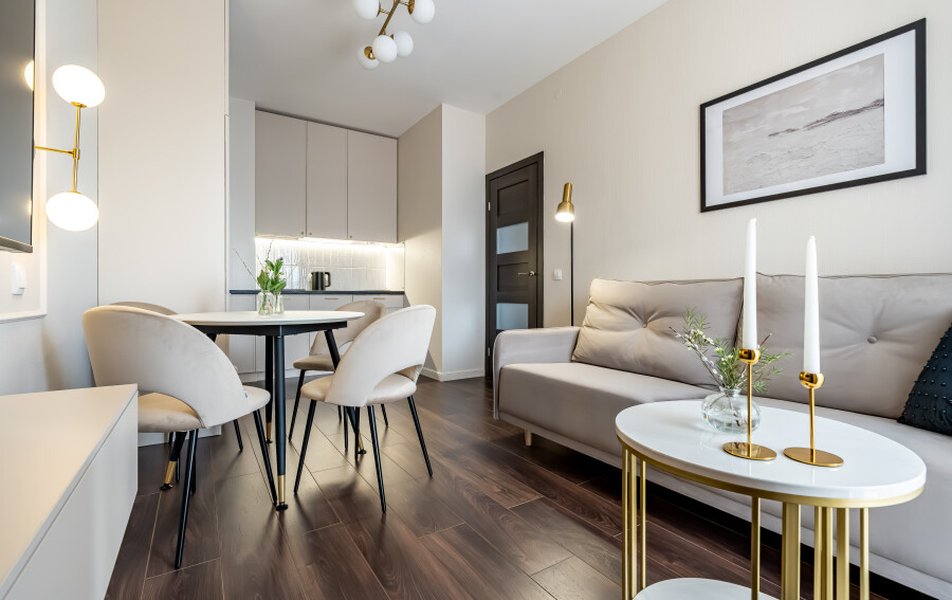 В апартаментах есть все для комфортного проживания: мебель, двуспальная кровать, раскладной диван, Smart TV. Кухня оборудована всем необходимым, плитой, холодильником, чайником и другой техникой и посудой (в том числе чай, кофе, сахар, масло, овсянка, печенье). Стиральная машина, фен, утюг, гладильная доска, интернет Wi-Fi. Санузел с ванной, шампунь, бальзам, гель для душа, жидкое мыло, ватные палочки, ватные диски, гель для стирки, мицеллярная вода, зубные наборы, тапочки, постельное бельё, полотенца. На каждого гостя предусмотрено по 2 полотенца. Замена белья и полотенец производится при бронировании свыше 7 суток бесплатно. В иных случаях за дополнительную плату. По предварительному запросу предоставляется детский стульчик и кроватку-манеж (платно).
