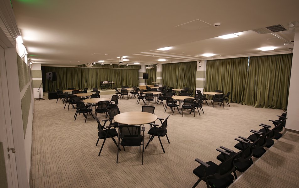 Конференц зал комплекса «Наследие» – это современное многофункциональное деловое пространство с несколькими вариантами рассадки, необходимым оборудованием и возможностью кофе брейка. Находится на 1 этаже отеля, чтобы никто не смог отвлечь от важного собрания или тренинга.