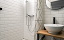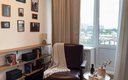 Внутреннее пространство выдержано в стиле лофт-минимализм: это светлая студия с панорамными окнами, откуда открывается живописный вид на крыши Московского района, и небольшим открытым балконом. В распоряжении гостей — всё необходимое для безупречного отдыха. Для двоих гостей подготовлена просторная двуспальная кровать с новым ортопедическим матрасом и мягкое кресло. На кухне предусмотрена полная комплектация для самостоятельного приготовления пищи: варочная поверхность, холодильник, микроволновая печь, электрический чайник, капсульная кофемашина и гейзерная кофеварка, а также полный набор посуды, включая бокалы и кастрюли. Ванная комната оснащена душевой кабиной. Для повседневного комфорта предоставлены постельное белье, полотенца, средства гигиены, фен, утюг с гладильной доской, сушилка для белья и стиральная машина. В студии есть телевизор и беспроводной высокоскоростной интернет.