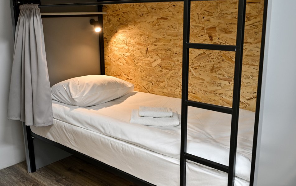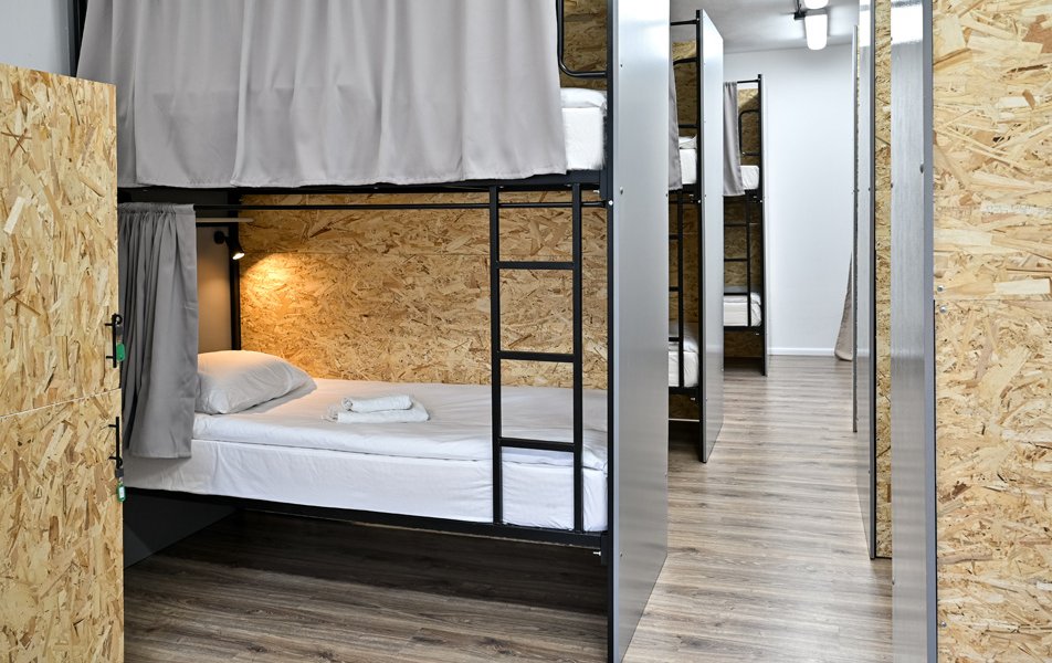 Гости могут остановиться в комфортабельных общих номерах на 12 человек, разделенных по полу –– мужские и женские. Также предлагается проживание в смешанном номере. В каждой комнате предусмотрены удобные кровати с розетками рядом и шкафчики для личных вещей.