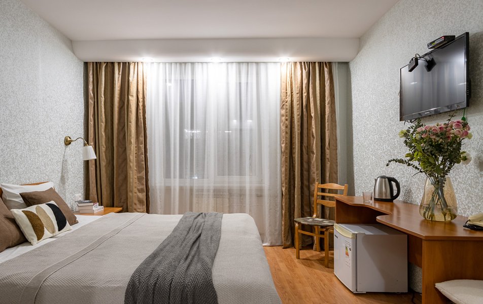 Размещение предлагается в номерах различной площади. В каждом из них есть все необходимое: удобные спальные места, телевизоры, светильники возле кроватей, плотные занавеси на окнах, а также личная ванная комната с полотенцами и сантехническим оборудованием.