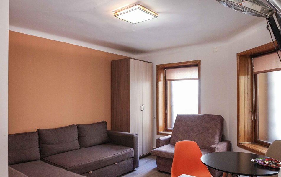 Пространство организовано вокруг комфортной зоны для сна с раскладным диваном-кроватью. Собственная ванная комната и компактная, но полностью оснащенная мини-кухня позволяют чувствовать себя как дома. После дня, проведенного в городе, удобно устроиться перед телевизором, оставаясь на связи с миром благодаря быстрому Wi-Fi.