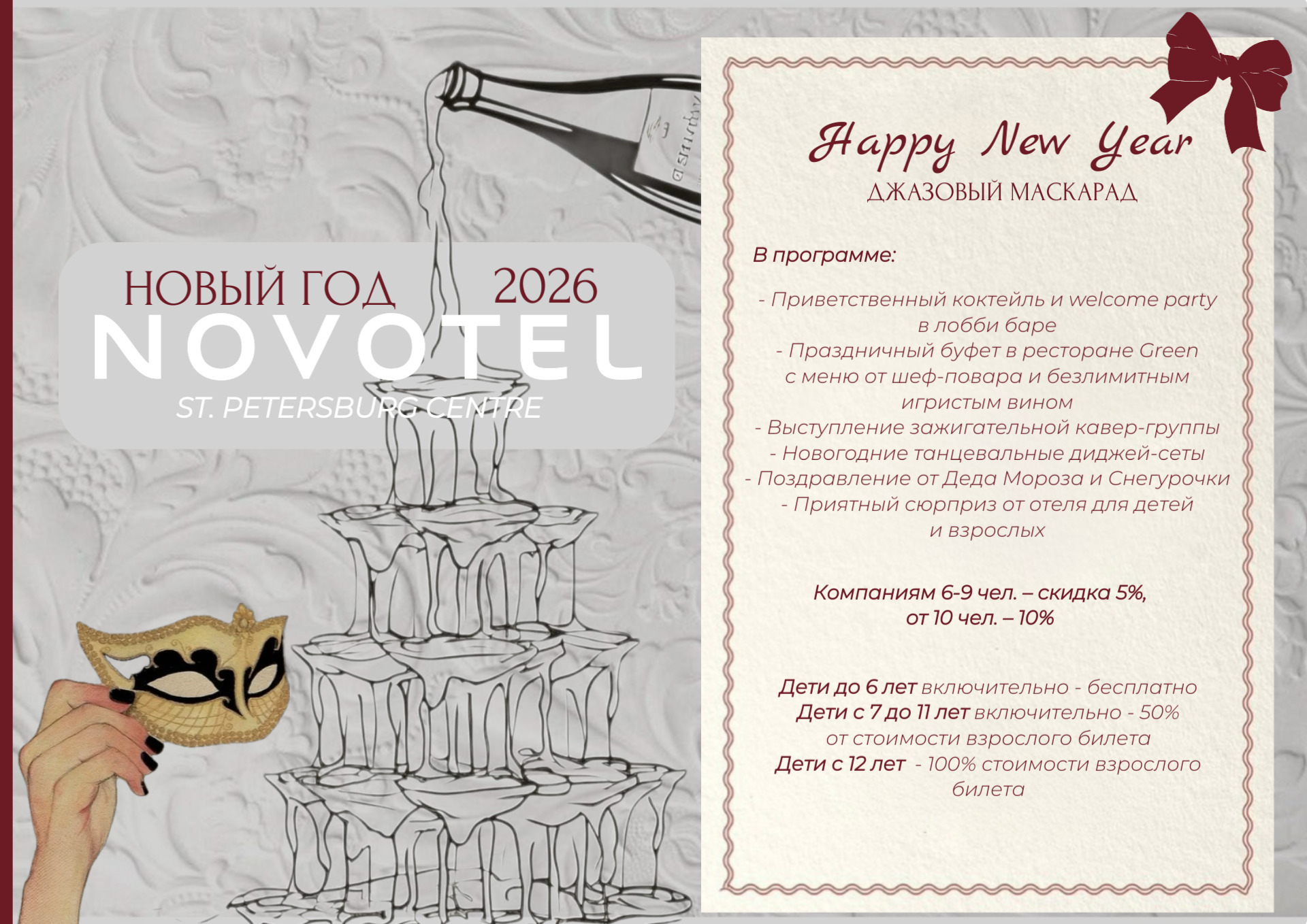 Рады сообщить о проведении праздничного ужина в Новогоднюю ночь в отеле Novotel St.Petersburg Center!