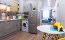 | Оборудование | микроволновая печь посудомоечная машина стиральная машина телевизор утюг холодильник |