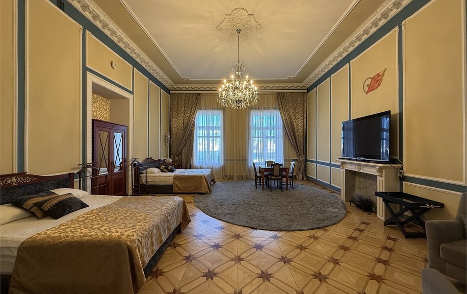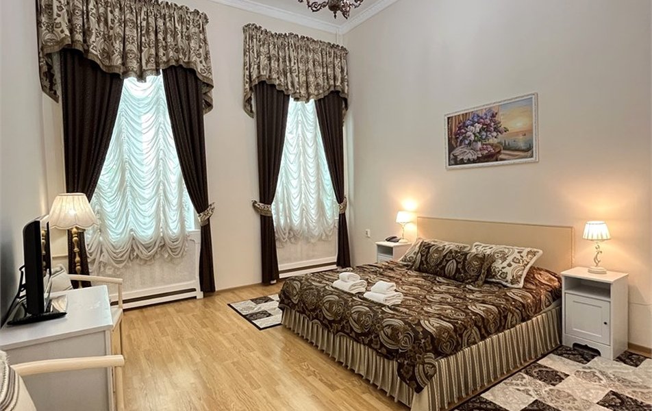 Отель занимает двухэтажное историческое здание — часть архитектурного ансамбля Английской набережной. Гостей здесь ожидают комфортабельные однокомнатные и двухкомнатные номера Double и Twin, интерьеры которых выдержаны в приятной цветовой гамме. Во всех номерах есть телевизор и мини-холодильник, а в ванных комнатах — фен и набор косметических принадлежностей.