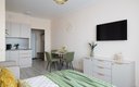Пространство рассчитано на комфортное размещение троих гостей. В спальной зоне установлена кровать с ортопедическим матрасом фирмы Аскона, обеспечивающая здоровый и глубокий сон. Кухня полностью оборудована посудой, кухонными приборами и всеми принадлежностями для приготовления пищи. В ванной комнате есть стиральная машина, сушилка для белья, фен, утюг с гладильной доской. Гостей ждут свежее постельное бельё, полотенца и средства личной гигиены. Для работы и досуга предусмотрены Wi‑Fi и телевидение со Smart TV.