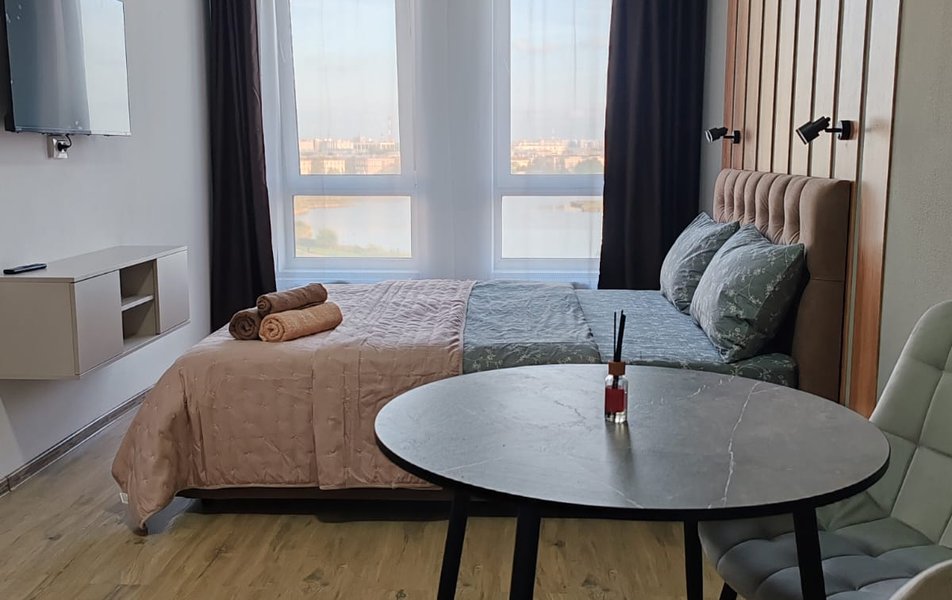 Эти комфортные апартаменты оформлены в современном стиле и готовы принять гостей. Здесь есть удобное спальное место с комплектом чистого постельного белья, прикроватные тумбочки, мягкое освещение по бокам, телевизор и полотенца.