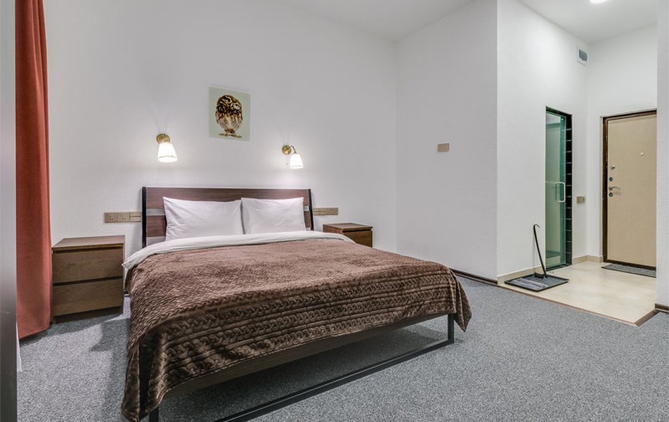 В каждом номере предусмотрены двуспальные кровати. Все комнаты оснащены телевизором, мини-холодильником и феном. Санузлы оборудованы душевыми кабинами. На всей территории работает бесплатный Wi-Fi.