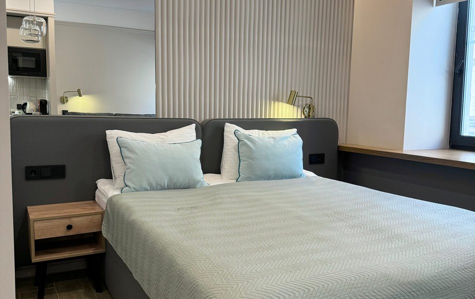 Гостей ожидает полный спектр удобств: кондиционер и современная система вентиляции, Smart TV и высокоскоростной Wi-Fi. Предусмотрено удаленное заселение, а безопасность обеспечивается видеонаблюдением и охраной. Высококачественная шумоизоляция и теплый пол создают уютную атмосферу.