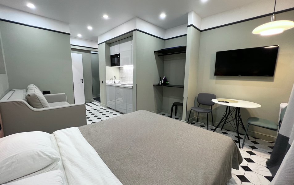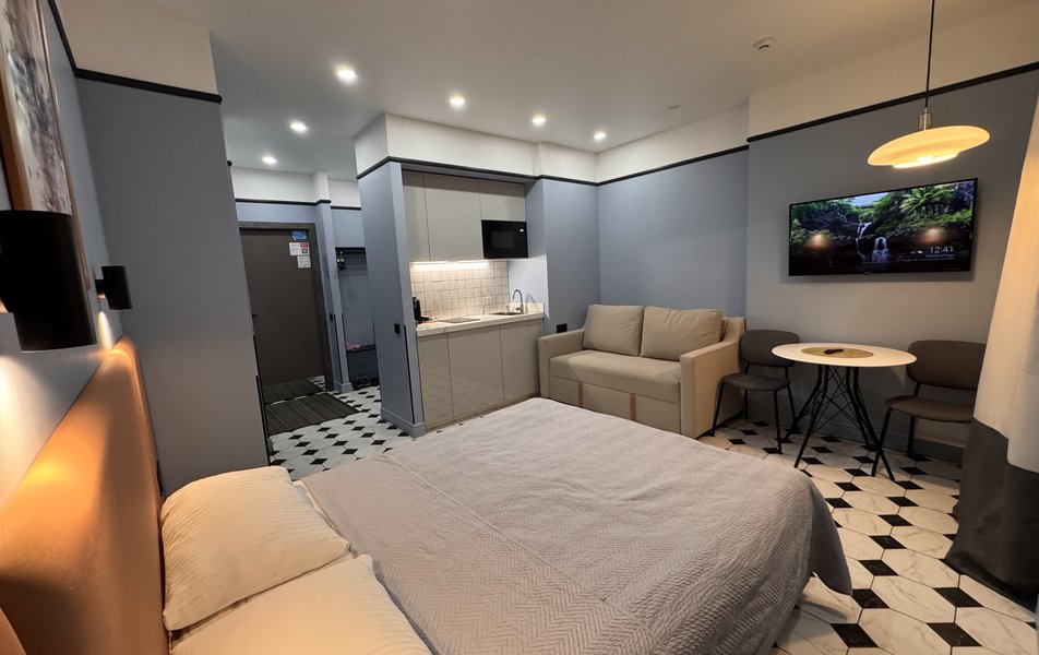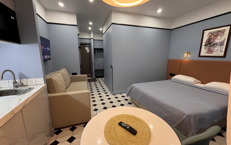 Гостей ожидает полный спектр удобств: кондиционер и современная система вентиляции, Smart TV и высокоскоростной Wi-Fi. Предусмотрено удаленное заселение, а безопасность обеспечивается видеонаблюдением и охраной. Высококачественная шумоизоляция и теплый пол создают уютную атмосферу.