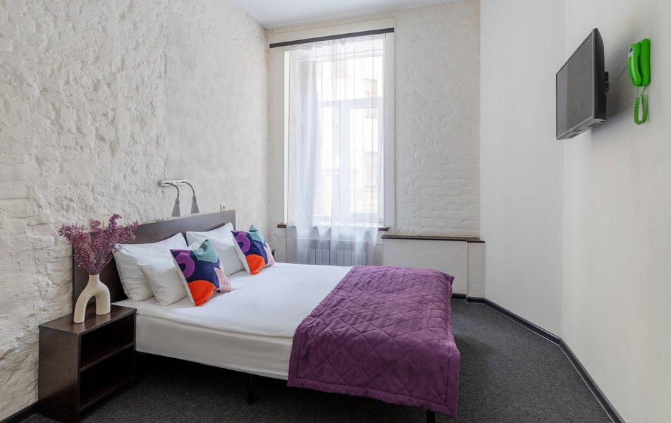 Комнаты разместились в четырехэтажном историческом здании, которое возвышается на углу канала Грибоедова. Жилой фонд, способный единовременно разместить более 110 человек, предлагает гостям комфортные двухместные комнаты. Во всех комнатах яркий современный интерьер, есть собственный санузел, кондиционер, плазменный телевизор.