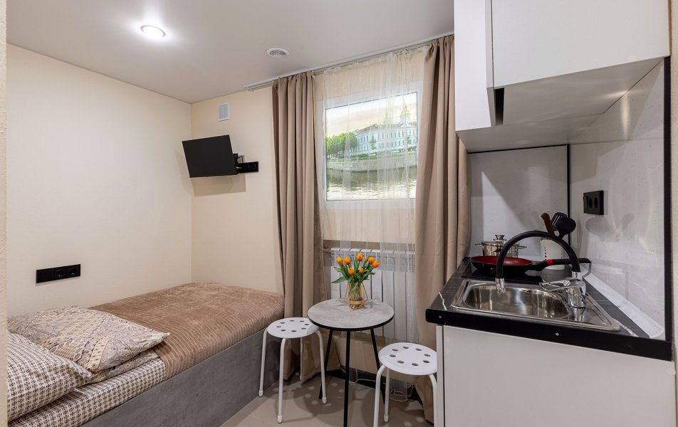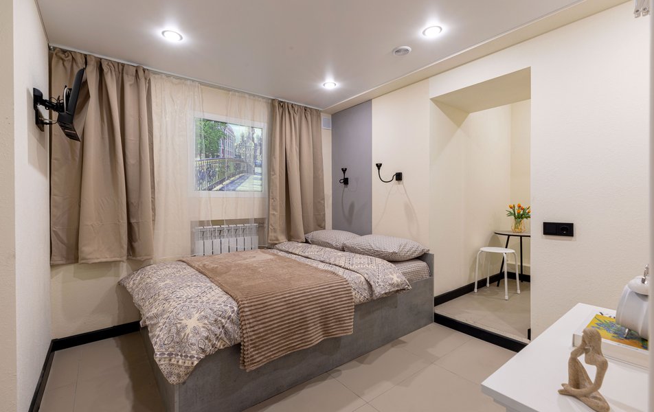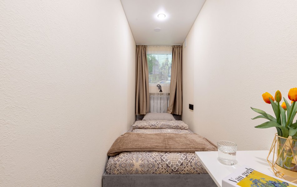 Гостям предлагаются функциональные и практичные апартаменты, созданные для самостоятельного проживания. Все пространства оборудованы собственной мини-кухней, что позволяет готовить самостоятельно, и оснащены необходимой бытовой техникой. В большинстве номеров установлена двуспальная кровать, а для путешествующих в одиночку предусмотрен специальный одноместный вариант. Интерьер выдержан в нейтральной и светлой гамме, создавая ощущение чистоты и порядка. Ключевая особенность сети — предложение вариантов без окон.