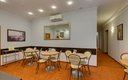 В отеле оборудована общая обеденная зона, где для отдыхающих накрываются завтраки. А на первом этаже здания работает кафе Штолле. Также всем гостям доступны услуги прачечной и беспроводной интернет.