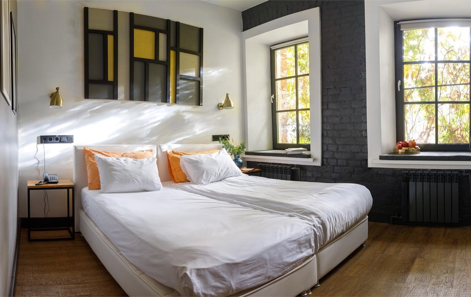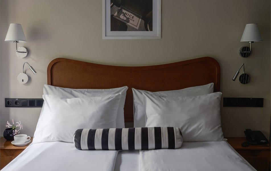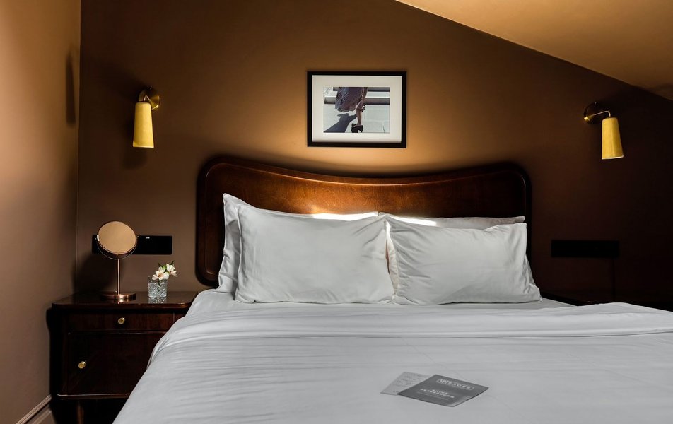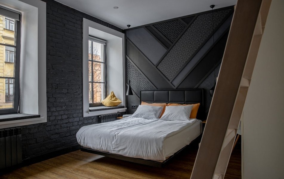 Внутри гостиницы гостей ждут атмосферные пространства, в дизайне которых минимализм сочетается с тёплой палитрой естественных тонов, навеянной самой петербургской архитектурой. Основу размещения составляют продуманные студии, каждая из которых включает собственную мини-кухонную зону. Для тех, кто путешествует в одиночку или парой, предусмотрены уютные решения с оригинальными мансардными окнами в потолке. Для семей или небольших компаний предназначены более просторные варианты, где можно удобно расположиться. Также гостям предлагается уникальный двухуровневый номер с изолированной спальней и собственной террасой.