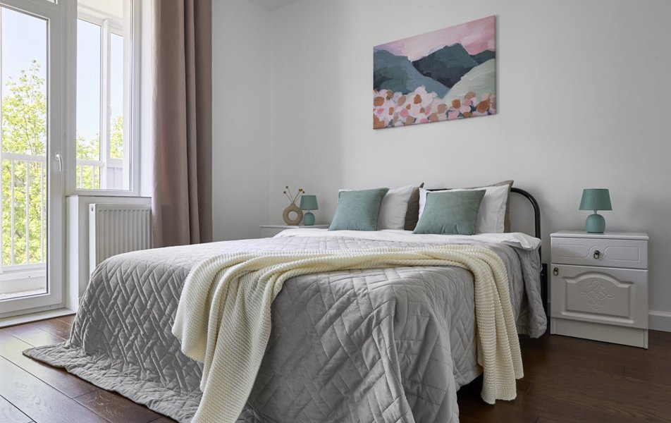 В этих просторных трехкомнатных апартаментах, выполненных в европейском стиле, созданы все условия для релаксации: светлая главная спальня с собственной ванной комнатой и душем, а также балконом с видом на тихий двор; просторная гостиная с удобным диваном-кроватью и телевизором, совмещенная с кухонной зоной, оборудованной многофункциональным островком для кулинарных экспериментов; уютная спальня с двуспальной кроватью, а также отдельная ванная комната с ванной.