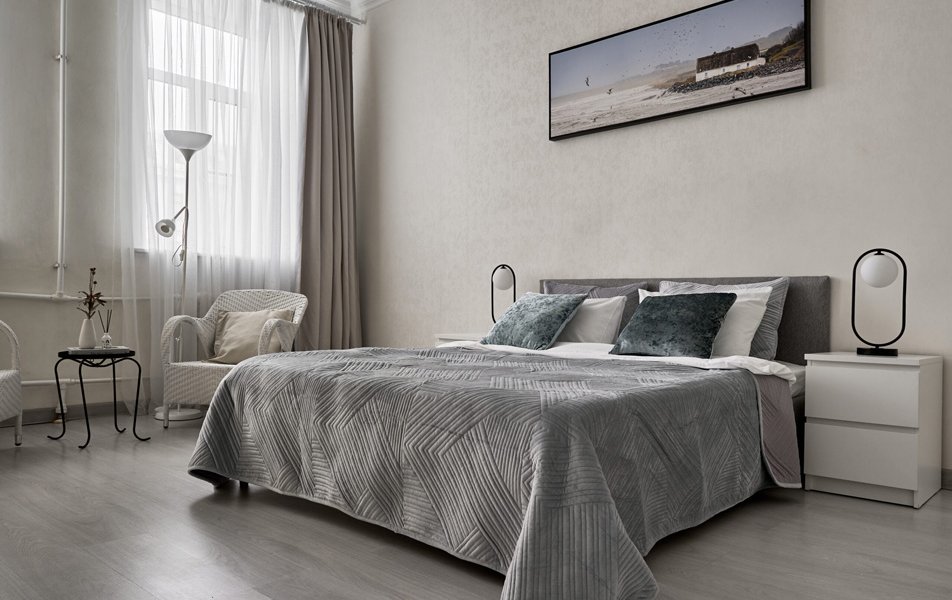 Гости могут остановиться в просторных двухкомнатных апартаментах с высокими потолками и лепниной, в которых можно почувствовать историческую атмосферу города и качественно восстановиться. Внутри предусмотрены отдельная спальня с удобной кроватью, необходимой мебелью, светлая, просторная гостиная с телевизором, полностью оборудованная кухня. В ванной со стиральной машиной есть окно, которое делает пространство визуально больше и уютнее.