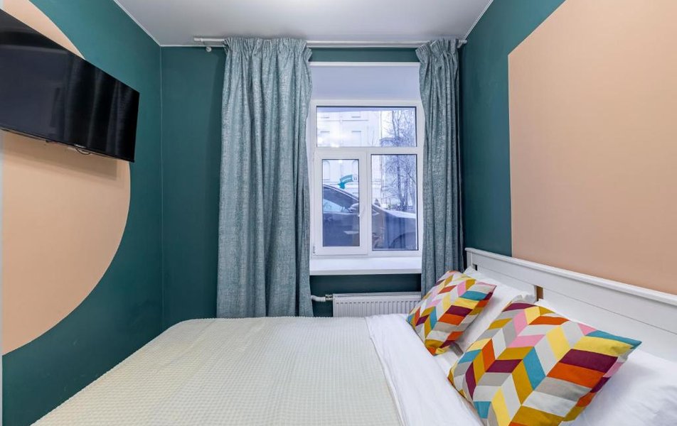 Апартаменты располагаются на первом этаже в 3-этажном здании. Интерьер комнат выполнен в современном стиле, с яркими цветовыми акцентами. Для удобства гостей установлены большие кровати, есть места для хранения личных вещей. В апартаментах предусмотрена телевизоры, стиральные машины, работает высокоскоростной интернет.