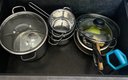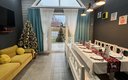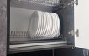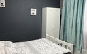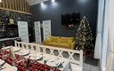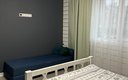 Кухня объединена с залом. Есть холодильник, газовая плита, духовка, микроволновка, чайник и посудомоечная машина — можно готовить с комфортом. В зале стоит большой стол на 2,5 метра, диван раскладывается, есть телевизор и колонка с Алисой. Места хватит и чтобы поужинать, и чтобы потанцевать.