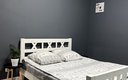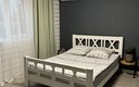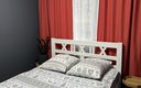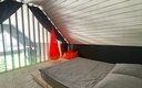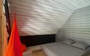 Внутри три отдельные спальни, в каждой двуспальная кровать, шкаф и розетки у изголовья. Наверху есть ещё спальное место на антресоли — детям там особенно нравится. Санузел с хорошей душевой кабиной (без поддона), стиральная машина, всё аккуратно и добротно.